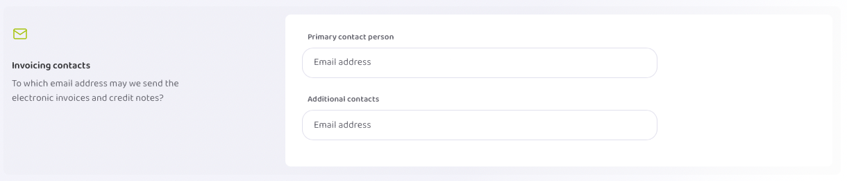 - If you would like to add an additional e-mail address to which invoices should also be sent, you can enter this under ‘Additional contacts’.